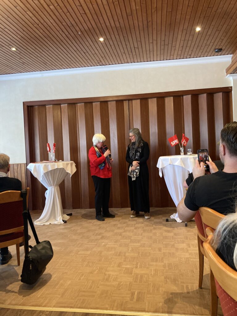 Ein Grußwort hielt zudem unsere Bundestagsabgeordnete Nina Scheer. Sie gab Einblicke in ihre aktuelle bundespolitische Arbeit, insbesondere im Umwelt- und Klimabereich, und machte auf die anstehenden politischen Herausforderungen aufmerksam. Dabei warb sie auch für Unterstützung im bevorstehenden Wahlkampf, unter anderem mit Blick auf die neuen Bundesländer sowie den Landtagswahlkampf.